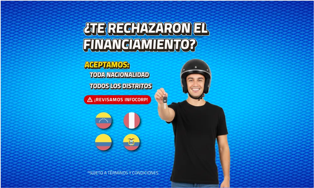 En Ridex puedes obtener un crédito si estás en Infocorp, siempre que nos presentes una carta de no adeudo de los reportes que figuran. Adicionalmente, tenemos muchas opciones para compras al contado de motos nuevas y seminuevas.